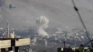 On 23 December 2016, in response to alleged pollution of water spring in Ain al-Fijah with diesel fuel by the rebels, government forces conducted airstrikes and shelling on Wadi Barada.[27] Pro-opposition sources instead claimed that it was Syrian Air Force airstrike that was the cause of Ain al-Fijah spring pollution;[28] this claim was later repeated by the Independent International Commission of Inquiry on the Syrian Arab Republic.[29] On 26 December, following airstrikes, the Army advanced into the valley from its outskirts and cliffs. 10 villages in the area were still held by the rebels.[10] The opposition accused the government forces of targeting Ain al-Fijah and nearby villages with barrel bombs which ostensibly led to severe damage to the spring.[30]