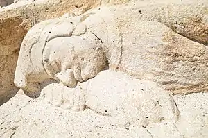 Following the death of Bahram II in 293, his son Bahram III was unwillingly proclaimed shah in Pars by a group of nobles led by Wahnam and supported by Adurfarrobay, governor of Meshan.[1] However, Bahram III was considered a weak ruler by the other nobles, who decided to pledge allegiance to Narseh, the last remaining son of Shapur I (r. 240–270), and someone who was perceived as being a stronger leader and one who would be able to bring glory to Iran.[2][3] Four months into Bahram's reign, Narseh was summoned to Mesopotamia at the request of many members of the Iranian nobility. He met them in the passage of Paikuli in the province of Garmekan, where he was firmly approved and likely also declared shah for the first time.