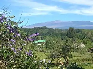 As Waiakea-Uka is on the lower flanks of Mauna Loa, the area is known in for its rainfall; in August 2013, the Waiakea-Uka NWS rain gauge showed 83.96 inches of accumulated rain, while the Hilo International Airport rain gauge only registered 57.97 inches for the same length of time; though these two rain gauges are about 6 miles apart, this represents a difference of 25.99 inches, or about the average yearly rainfall of the state of Kansas.[5] As a result, Papaya, Guava, Citrus and Plumeria are grown by many residents. In recent years, plums and peaches can be seen around many of the area's fields.