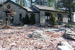 Originally a log structure built by a logging company, the building took its present form during the 1930s when it was rebuilt by the Civilian Conservation Corps (CCC). It served as a restaurant and inn until 1965, when it was abandoned. Soon after, the building was rented by an artist group who used it until 1969 when it was again left vacant. By the mid-1970s the building was slated for demolition, but a group of conservation-minded locals lobbied successfully for its inclusion on the National Register of Historic Places in 1977. Spared from destruction, the building served as an irregular store to hikers and tourists until 1983 when Jeff and Dorothy Hansen took over management of what became known as Mountain Crossings at Walasi-Yi. In the 1990s the store was operated by Peggy and Justin. The building was then leased and operated by Winton Porter from 2001 to 2013.[2] Porter wrote a book about his experiences and the unusual events and characters he saw there called Just Passin' Through (2009). It is currently operated by Logan and Georganna Seamon.[3]