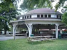 Waldameer & Water World is an amusement park and water park in Erie, Pennsylvania located at the base of Presque Isle. Waldameer is the fourth oldest amusement park in Pennsylvania, the tenth oldest in the nation, and one of only thirteen trolley parks still operating in the United States.[1] The park is admission-free, with a midway, and covered picnic facilities. The roller coasters and other major rides require either the display of a paid wristband scanned upon riding, or the use of "Wally Points" on their "Wally Card" system. A gift shop is located in the park selling Waldameer souvenirs. The water park operates an assortment of water slides and raft rides and is admission by fee only. The name "Waldameer" can be translated literally as "Woods by the Sea" in German.[2] Waldameer's operating season runs from May through September.