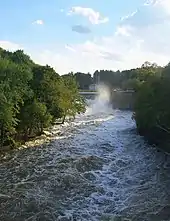 The village's most notable geographical feature is the Wallkill River, which flows from the south to the north across the village and divides one-third of it from the rest. Within the eastern portion, Tin Brook, the Wallkill's major right tributary in New York, meanders across as well, forming part of the northern village boundary. There are two waterfalls and dams on the river within the village limits, known as the Great and Little Falls; and two auto bridges, the "high" (formally, the Walden Veterans' Memorial Bridge, which carries NY 52 through the village as West Main Street) and "low" (Oak Street) bridges).