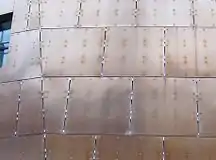 The architect's concept of the building was a building that expressed "Welshness" and was instantly recognisable.[22] The building was designed to reflect the many different parts of Wales with local Welsh materials that dominate its history: slate, metal, wood and glass.[23] All the materials used come from Wales; the WMC was built from 1,350 tonnes of Welsh slate, 300,000 concrete blocks, and a million metres of electric cable.[24]