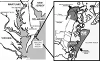 The WFF Main Base is located on the Eastern Shore of Virginia on the Delmarva Peninsula about 5 miles (8.0 km) west of Chincoteague, Virginia; about 90 miles (140 km) north of Norfolk, Virginia, and 40 miles (64 km) southeast of Salisbury, Maryland. The WFF consists of three separate parcels of land totaling 6,200 acres (25 km²): the Main Base, the Mainland, and the Wallops Island Launch Site. The Mainland and the Wallops Island Launch Site are about 7 miles (11 km) southeast of the Main Base.