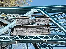 The Walnut Street Bridge fund was started by Chattanooga Venture, a community group, to receive funds to be used by the city toward restoration of the bridge.[4] Once the campaign was finished, the remaining funds were used for additional improvements to the bridge. These funds led to the replacement of original plaques which had been damaged, vandalized, or stolen.[4] The original plaques have been renamed to The Parks Foundation, an organization committed to enhancements, improvements and programming to extend the utilization of all our parks and public space to the greatest number of people.[4] The foundation is offering new plaques to donors that strive for the same mission.
