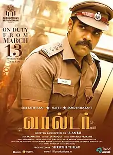 Walter is a 2020 Indian Tamil-language crime action film written and directed by U. Anbarasan and produced by Shruthi Thilak. The film stars Sibi Sathyaraj, Nataraj, Samuthirakani, Riythvika, Sanam Shetty, Munishkanth and Shirin Kanchwala. The principal photography of the film commenced in June 2019,[1] and the film was released on 13 March 2020.[2]
