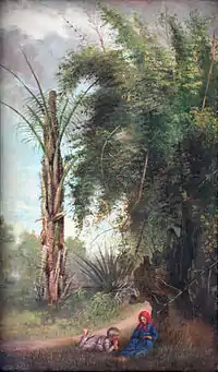 In 1864 Goodman, Cuadras, and a servant were sketching in the Santiago area, when they were arrested by the military and imprisoned in the subterannean dungeons of the Morro Castle,[17] under suspicion of making plans of the castle fortifications. They remained incarcerated until the English Vice-Consul, Mr F. W. Ramsden, supported by Cuadras' influential friends, interceded for their release. The Ten Years' War broke out towards the end of 1868 – and Goodman's involvement in this forced him to flee Cuba. So abrupt was his departue from the island that many of the sketches and paintings which he and Cuadras had intended to transport to Europe, were left behind and never recovered.[1]