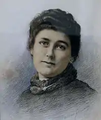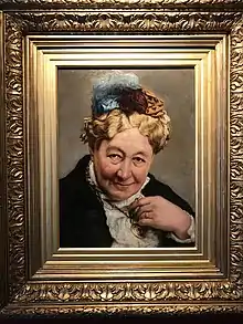 In 1887 Goodman exhibited three portraits – Mary Anne Keeley, Fanny Stirling[53] (both presumably loaned from The Garrick Club), and Grace Darling, at the Signor Palladiense Gallery, on Bond Street in London.[54] The Keeley and Stirling portraits were also exhibited in 1887 at Messrs Hennah and Kent's studios in London's Old Kent Road.[55] In 1888 Goodman produced a head and shoulders portrait of Fanny Stirling Mrs Stirling (Lady Hutton Gregory).