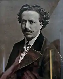That same year Goodman scored two coups involving the new Chinese diplomatic missions to Europe. Liu Hsi-Hung, Chinese minister to the Court of Berlin, commissioned him to copy the National Gallery's Madonna in Prayer by Sassoferrato, reputedly the first commission given by a Chinese to an English artist.[34] The painting was subsequently dispatched to Germany. He also painted His Excellency Kuo Ta-Jen (Kuo Sung-Tao), Chinese Minister to the Court of St. James's (China's first such ambassador), initially exhibited in 1878 at the Royal Academy[35] and later at the Walker Art Gallery in Liverpool. The authorities back in China showed their displeasure at allowing counterfiet presentments by not giving permission for the painting to be transported to China. It was eventually purchased by a private collector known to Goodman, and its present whereabouts are unknown.[1]