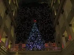 In 1956, the Philadelphia Wanamaker's premiered a Christmas Light Show, a large musical and blinking light display several stories high, viewable from several levels of the building, but with the best viewing on the central ground floor. Its popularity with Philadelphia parents and children, as well as tourists, ensured a continuous run, even after the building was sold to different business interests.