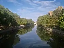 Wangjing area mainly features plain topography. In the north, the Beixiao River runs from west to east. There are mounds in the east which are probably the Wangjing Dun that was used for military affairs in the Ming Dynasty. On the west and south, there are more than ten connected parks and green spaces.[18]
