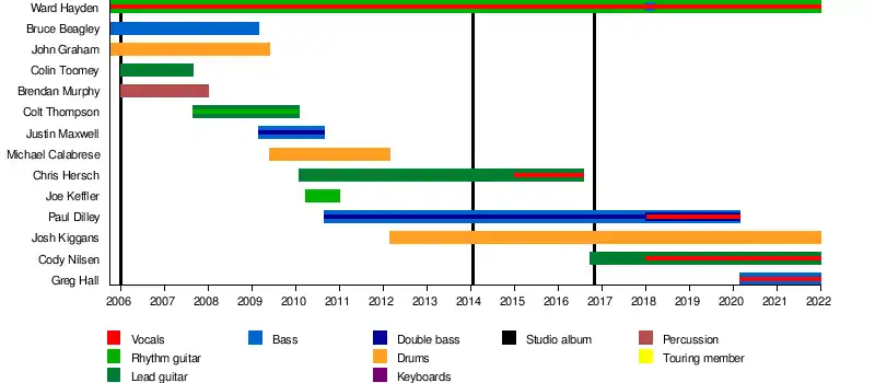 - Ward Hayden — lead vocals, rhythm guitar, double bass, drums (2005–present)