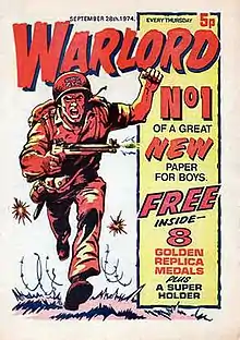 ![]() The first issue of Warlord was published in 1974, included a free gift and cost 5p. | |