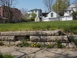 ![]() The stone retaining wall along the sidewalk where the building was located. | |