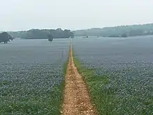To the south and east of the village Hayden Lane crosses the old railway line and climbs a spur of the chalk downs to the Old Winchester Hill National Nature Reserve, which is just outside the eastern end of the parish . The South Downs Way links these two nature reserves and shares short sections of the Monarch's Way either side of the parish. The route across the valley has been contentious and was the subject of public inquiries in 2004 and 2006. Although a footpath route via Beacon Hill Lane and Peake New Road was approved after the second inquiry, the inspector's decision was overturned in the High Court[13] and this route has not been pursued further by Hampshire County Council. Ordnance Survey maps now show a southerly route past Beacon Hill via Exton, implemented as a temporary measure but now in place for the foreseeable future.