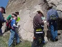 The Wasatch Fault is a normal (vertical motion) fault which forms the eastern boundary of the Basin and Range geologic province which comprises the geographic Great Basin. The Wasatch Mountains have been uplifted and tilted to the east by movement of the fault.[3] The average vertical displacement rate of the fault over its history is approximately 0.8–1.2 mm/yr.[4]