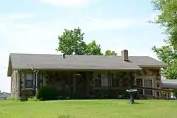 The Washburn House is a historic house at 40 Battles Loop in Guy, Arkansas. It is a single story Ranch style house with a gabled roof. It has wood-frame construction, but is finished in sandstone veneer with cream-colored brick trim, hallmarks of the construction style of a noted regional African-American mason, Silas Owens Sr., who built this house in 1953. It features quoined brick surrounds for the doors and windows and a front porch whose roof is an extension of the main roof, with wrought iron posts.[2]