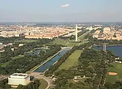 The National Mall in Washington, D.C., Baltimore's Inner Harbor, and Rosslyn in Arlington