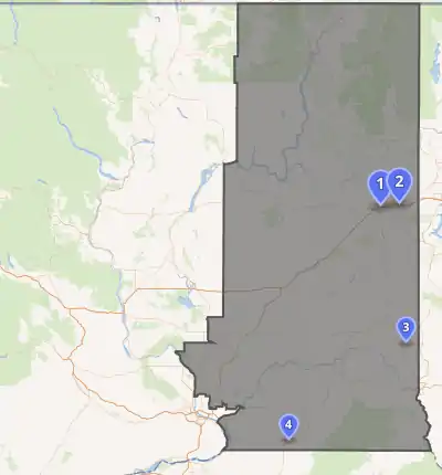 Interactive map of district boundaries. Points indicate major cities in the district (Spokane, Spokane Valley, Pullman, and Walla Walla respectively). | |||