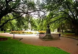 Washington Square is a park in downtown Charleston, South Carolina. It is located behind City Hall at the corner of Meeting Street and Broad Street in the Charleston Historic District. The planting beds and red brick walks were installed in April 1881.[1] It was known as City Hall Park until October 19, 1881 (the centennial of the Yorktown surrender), when it was renamed in honor of George Washington.[2][3] The new name was painted over the gates in December 1881.[4]