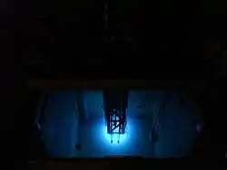 It was initially a General Electric Materials Test Reactor with plate-type fuel bundles, but was upgraded in 1967 to a 1MW General Atomics TRIGA (Teaching Research Isotopes General Atomics) reactor.[1] Standard TRIGA fuel rods are cylindrical rods, clad in stainless steel utilizing Uranium-235 dispersed in a ceramic zirconium-hydride matrix as fuel.[2] The WSUR operated with this TRIGA fuel until the Fuel Life Improvement Program (FLIP) once again upgraded the reactor in 1976 with a partial new core of high-enriched 'TRIGA FLIP' fuel designed for an extended lifetime.[1] Two years later, in 1978, due to global fears of nuclear proliferation it was federally mandated that all high-enriched reactor fuel (except for military use) be replaced with Low Enriched Uranium Fuel (LEU).[3] Due to the extensive work, cost, and the number of research reactors undergoing the procedure, the WSUR was not converted until October 2008. All FLIP fuel was replaced by another TRIGA fuel known as 30/20 LEU and when the new core went critical on October 7, 2008 it became the world's only mixed 8.5/20 (Standard TRIGA) and 30/20 LEU core.[4] The facility license was renewed for an additional 20 years upon completion of a safety analysis and review. The effective date was September 30, 2011.