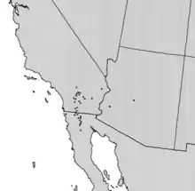 Primary populations are found in desert riparian habitats at spring-fed and stream-fed oases in the Colorado Desert[11] and at a few scattered locations in the Mojave Desert.[12] It is also found near watercourses in the Sonoran Desert along the Gila River in Yuma,[13] along the Hassayampa River and near New River in Maricopa County, and in portions of Pima County, Pinal County, Mohave County (along the Colorado River), and several other isolated locations in Clark County, Nevada. It is a naturalized species in the warm springs near Death Valley and in the extreme northwest of Sonora (Mexico). It is also reportedly naturalized in the South and Southeast Texas, Florida, Hawaii, and extreme southwest Utah, the U.S. Virgin Islands, and Australia.[14][15]
