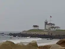 The Watch Hill Lighthouse in Watch Hill, Rhode Island has served as a nautical beacon for ships since 1745, when the Rhode Island colonial government erected a watchtower and beacon during the French and Indian War and Revolutionary War. The original structure was destroyed in a 1781 storm, and plans were discussed to build a new lighthouse to mark the eastern entrance to Fishers Island Sound and to warn mariners of a dangerous reef southwest of Watch Hill.