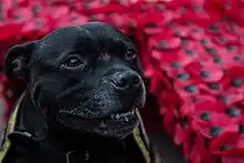 At the Field of Remembrance ceremony held at Westminster Abbey on 10 November 2016, Watchman was introduced to HRH Prince Harry and HRH Prince Philip.[16] Watchman and his handler also featured in the Royal British Legion's Festival of Remembrance event, broadcast on BBC1, broadcast on Saturday 12 November. This was on a section covering the experiences of soldiers from the Staffordshire Regiment in the 1st Gulf War.[17] Watchman V held the rank of Colour Sergeant.[18] He was promoted to sergeant as part of the 2015 St Georges Day celebration held in Tamworth Castle Grounds and Colour sergeant on 21 December 2017 at the Kings Head Pub in Lichfield, as part of the Ferozeshah day celebrations.
