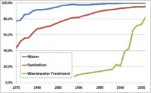 Water coverage during this period increased substantially from 78% in 1976 to 98% in 1988. Sewer coverage increased from 52% in 1976 to 82% in 1988.[9]