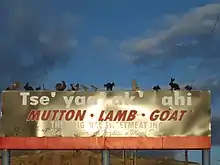 The area now known as Waterflow is traditional Navajo territory. This place was called Chʼį́įdii Łichííʼ (Red Devil) in reference to Walter Stallings who operated a trading post in the area;[5] nowadays, Tséyaa Akʼahí (beneath-rock oil) seems to be another designation in reference to the nearby oil fields, as can be seen on billboards in the area (pictured).