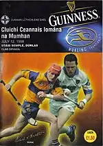 Hurling is generally regarded the dominant sport, with the county having won the All-Ireland Senior Hurling Championship twice.[1] While football is the secondary sport in the county, it is widely played nonetheless. Waterford's greatest footballing achievement was reaching the 1898 All-Ireland Senior Football Championship Final, which they lost to Dublin.[2]