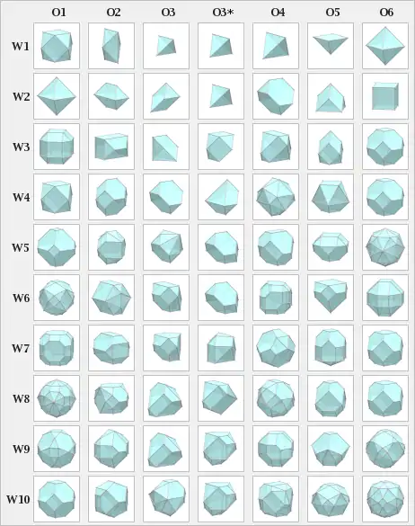 - Cuboctahedron: W1 O1, W4 O1
