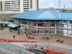The Waterside, is a festival marketplace on the Elizabeth River in downtown Norfolk, Virginia, opened June 1, 1983. While the Waterside Annex was demolished May 16, 2016, the main portion was renovated and reopened as Waterside District in May 2017.[1] A critical component of Norfolk's ongoing post-World War II revitalization, the complex connects via a cross-street pedestrian bridge to a parking garage, sits at the foot of the Portsmouth Ferry terminal, and connects via a waterfront promenade to the downtown, the nearby baseball stadium (Harbor Park), naval museum (Nauticus) and waterfront neighborhood of Freemason Harbor.