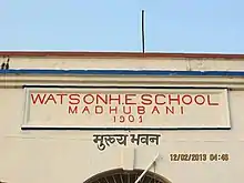 Watson High School Madhubani is a high school located in Madhubani, Bihar, India. It was established in 1901 by A. W. Watson, who was Sub-Divisional Officer in Madhubani from November 1900 to April 1903.[1][2]