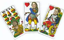 The three highest trick-winning cards are the three "Criticals" (Kritische or Kritten), also called "Greeks" (Griechische or Griechen) regionally:
