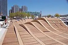 The Toronto Waterfront Wavedecks are a series of wooden structures constructed on the waterfront of Toronto, Ontario, Canada, as part of the revitalization of the central waterfront. Waterfront Toronto committed to constructing a series of unique wooden wavedecks along the water's edge for the 3.5 km area running from Bathurst Street to Parliament Street.[1] All the WaveDecks are accessible from the southside of Queens Quay.