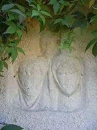 The former mansion of the Pollards at Way is now represented by the farmhouse known as Way Barton. Reset into the front wall of the house is a stone sculpture dated about 1300 showing the faces of two ladies wearing wimples and above them the smaller face of a man.[3] In 1309 Robert Pollard was granted by the Bishop of Exeter licence to build an oratory at Weye, of which no trace remains in the present house.[4]