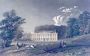 Weald manor, parts of which dated to the 16th century, was bought by Sir Anthony Browne in 1547 and he died at Weald Hall in 1567.[3] In 1685, Erasmus Smith bought it from Sir William Scroggs.[4] The current layout is largely the result of landscaping carried out in the naturalistic manner of Capability Brown for Hugh Smith, lord of the manor from 1732 to 1745.[5] In 1752, the estate was sold to Thomas Tower of Iver in Buckinghamshire, a lawyer and MP for Wareham in Dorset. Christopher Tower succeeded as the owner in 1778 and immediately commissioned Robert Adam to design a new dining room. On his death in 1810, his son, Christopher Thomas Tower, succeeded until 1867; he enlarged the estate and enclosed some commons as "waste".