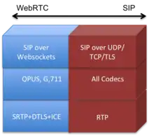 - Signalling: There is no standardised signalling protocol for WebRTC applications. However, SIP over WebSockets (RFC 7118) is often used partially due to the applicability of SIP to most of the envisaged communication scenarios as well as the availability of open source software such as JsSIP. In such a case, the gateway would only need to repackage the SIP packets from the WebSocket layer into UDP, TCP or TLS.