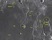 By convention these features are identified on lunar maps by placing the letter on the side of the crater midpoint that is closest to Webb.