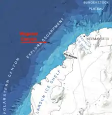 Wegener Canyon (70°45′S 14°0′W) is a submarine canyon named for Alfred Wegener. It is located between Kap Norvegia and the Explora Escarpment as a feature for sediment transport at the Antarctic continental margin. The Canyon was mapped during various expeditions of the German research vessel RV Polarstern with a swath sonar system. The name was proposed by Hans Werner Schenke, Alfred Wegener Institute for Polar and Marine Research, Bremerhaven, Germany. Name approved 7/89 (ACUF 233).