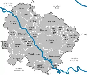 Weißenburg-Gunzenhausen is a Landkreis (district) in the west of Bavaria, Germany with a population of 95,000. Neighbouring districts are (from the north clockwise) Ansbach, Roth, Eichstätt and Donau-Ries. It is located in the south of Middle Franconia, 50 kilometres south of Nuremberg. Largest city and the administrative center is Weißenburg in Bayern.