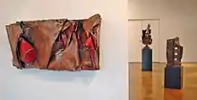 Welding was increasingly used in sculpture from the 1930s as new industrial processes such as arc welding were adapted to aesthetic purposes.[2] Welding techniques, including digital cutting, can be used to cut and join metal. Welded sculptures are sometimes site-specific. Artist Richard Hunt said "The idea of exploiting welding methods and the tensile strength of metals opened up many possibilities to me. This idea was actually linked to the increasing recognition among artists that an art which was representative of our own time ought to use materials and techniques that were at hand, whether it was new experiments using plastics, new kinds of paints, new kinds of surfaces in painting, or using materials developed during the war effort."[3]"