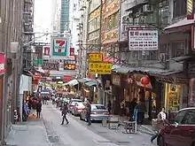 Wellington Street (Chinese: 威靈頓街) is a one-way street located in Central and Sheung Wan, Hong Kong. Named after Arthur Wellesley, 1st Duke of Wellington, it stretches from Wyndham Street to Queen's Road Central. The two sides of street is a mosaic of old and new buildings. Varieties of trades can be found on the street level. Street markets can be found in the adjacent lanes.