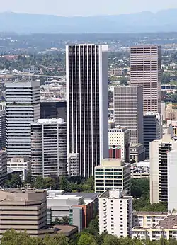 Wells Fargo Center is a 40-story, 166.4 m (546 ft) tower and a five-story adjacent office building with three levels of parking below the surface in Portland, Oregon. The tower became the tallest building in the state of Oregon when it was completed in 1972.[5]