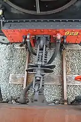 The Grondana coupling now used on the railway, with a centre buffer and screw coupling link[3]