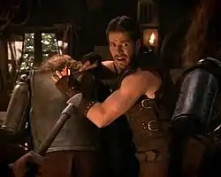 The episode opens with a voice-over narration explaining that the Makonian Empire, commanded by Emperor Xanus rules the land with an iron fist and has crushed the leadership of an upstart rebellion, but that freedom fighter, Kröd Mändoon (Sean Maguire) has continued to resist, striking out at the enemy and releasing slaves and political prisoners.