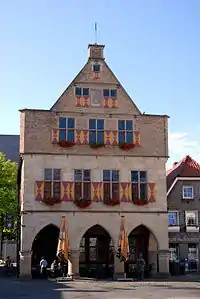 Traders and peasants continued to accrete throughout the next three centuries. At some point between the years 1192 and 1195, the regional bishopric established a customs agency at Werne and put the place under its direct jurisdiction. The year 1253 found Werne in an alliance (the "Werner Bund") with the cities of Münster, Dortmund, Soest and Lippstadt to defend transit and trading rights relating to a bridge over the Lippe river. In 1470 Werne became a member of the Hanseatic League. A town hall was built from 1512 to 1561.
