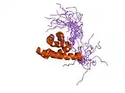 WRN is an oligomer that can act as a monomer when unwinding DNA, but as a dimer in solution or a tetramer when complexed with DNA, and has also been observed in tetrameric and hexameric forms. The diffusion of WRN has been measured to 1.62 in nucleoplasm and 0.12 at nucleoli.[13] Orthologs of WRN have been found in a number of other organisms, including Drosophila, Xenopus, and C. elegans. WRN is important to genome stability, and cells with mutations to WRN are more susceptible to DNA damage and DNA breaks.[14]