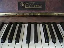 ![]() The logo and keys of a late Wertheim upright piano from between 1925–1930 | |